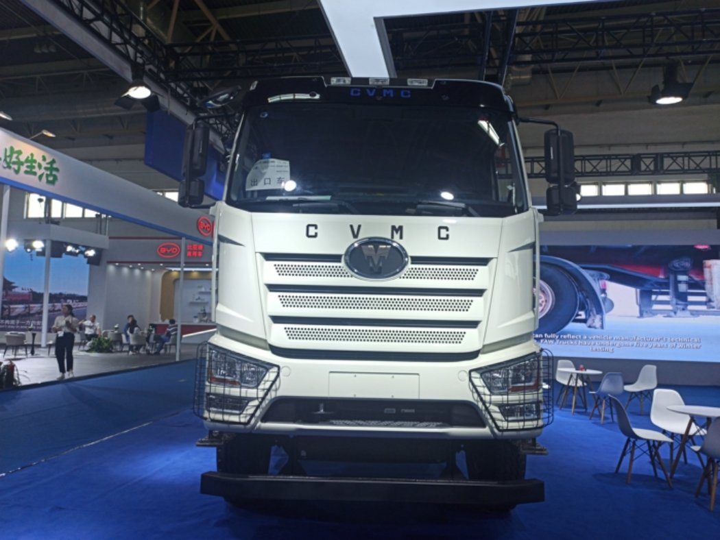 From the appearance point of view, Jiefang and Zhongjiao vehicle joint brand dump truck, the driving form is 6×4, using Jiefang J6L flat-top cab, steering wheel layout is left rudder type. The word "export car" is clearly marked on the front windshield, which means its market positioning, which also distinguishes it from other domestic display cars and attracts more attention. The front face logo of the vehicle cab adopts the trademark of the vehicle, the English logo of the vehicle "CVMC" is on the hood, and the words of the vehicle and CVMC are also visible on the side of the cab to improve the brand recognition of the vehicle.